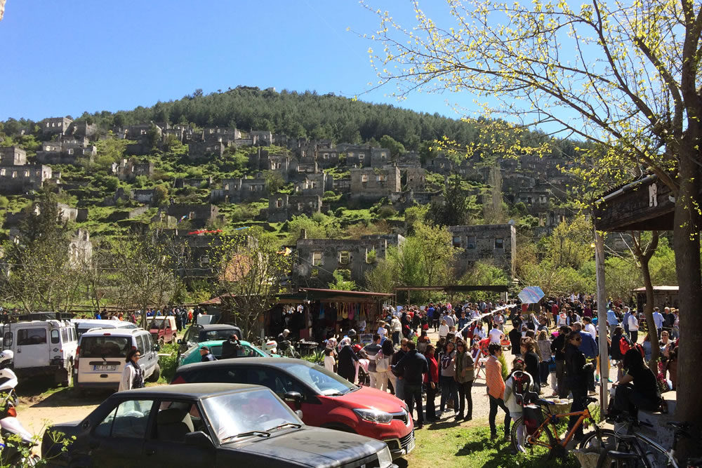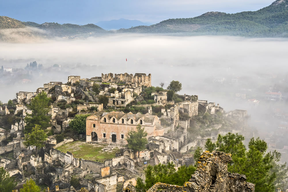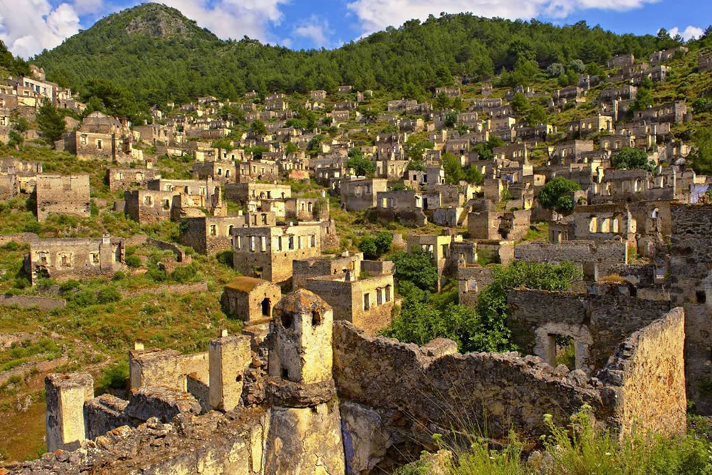 Kayaköy, or the Ghost Town, which was inhabited by the Greeks until  1923, is now an open air museum with about 500 hundred houses and three churches. Greeks called the town Levissi. During the 1923 population exchange between the Turks and Greeks, Kayaköy was evacuated and the new residents did not occupy the existing houses. Kayaköy, now abandoned, become a Ghost Town although the fertile valley is still inhabited and farmed today. 2 Greek Orthodox Churches, chapels, numerous houses and schools remain to be explored.
