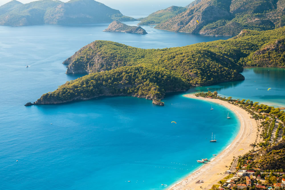 A small neighbourhood and beach resort in the Fethiye district which is located at the conjunction point of the Aegean and Mediterranean seas. Ölüdeniz is in the south of Fethiye, near Mount Babadağ. The lagoon is a nation natural reserve with a blue flag beach. The flawless, calm waters of the lagoon is perfect for a refreshing and easy swimming.