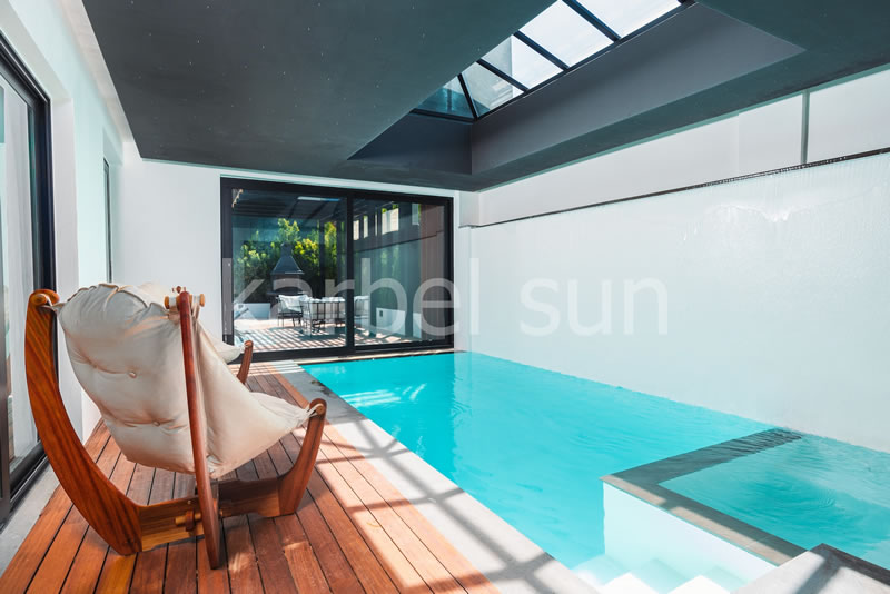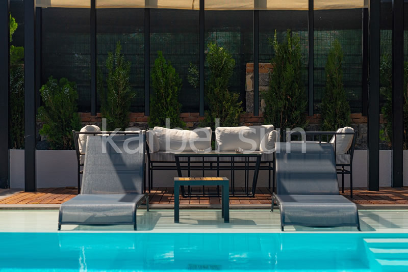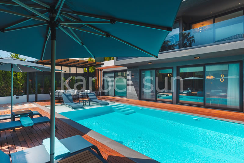 A total 300m² of living space with a private pool and a sunbathing area, a cosy seating room with stylish furniture and spacious, light –filled suites provide a blend of elegance and comfort. The indoors and outdoors of our villa are meticulously designed to offer an accommodation that is perfectly in balance with the natural setting, promising a tranquil and relaxing atmosphere.